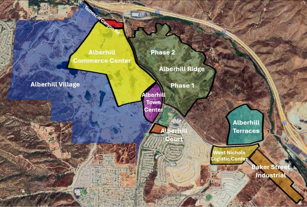 Alberhill is located in the heart of the Temescal Valley in the City of Lake Elsinore and consist of 8 different properties spanning residential, commercial, and employment driven developments. Lansing has lead the effort to bring much needed infrastructure upgrades to this region of the City and continues to work with the City and private partners to bring smart planning and development to this growing area of the City.